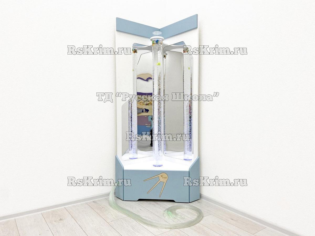 Для усиления расслабляющего и завораживающего эффекта за воздушно-пузырьковым цилиндром установлены небьющиеся акриловые зеркала. Они умножают пространство и создают глубину и загадочность.