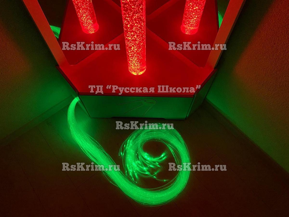 Воздушно-пузырьковая колонна имеет цветную подсветку, цвета в которой плавно сменяются. И вместе с кружащимся потоком пузырьков это производит на человека завораживающее действие - хочется ни о чём не думать, просто сидеть и смотреть.
