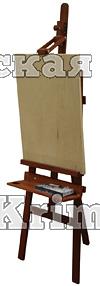 Складной мольберт-тренога классического дизайна с лотком и бегунком, позволяющим менять наклон холста. Может быть выполнен из других твердых пород дерева.