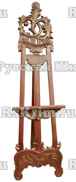 Мольберт выполнен из массива липы по образцам русских резных мотивов ХVIII-ХIX века. Ручная работа. Тонирование с золочением, лак.