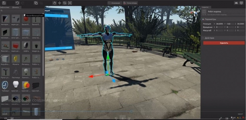 - Доступ к библиотеке готовых 3D-объектов для моделирования VR-приложений