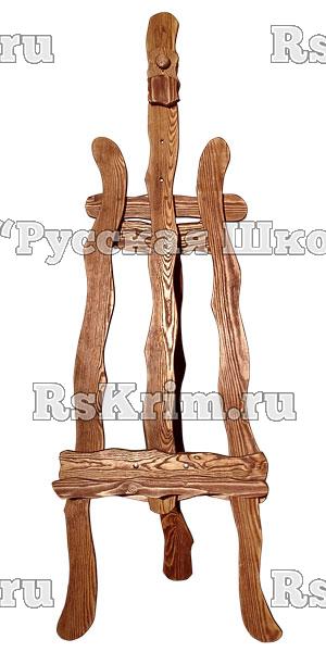 Дизайнерский мольберт-тренога целиком выполненный вручную. Использована технология фактурной обработки дерева. Мольберт покрыт морилкой и лаком с промежуточным осветлением. Пригоден как для выставки, так и для рисования.