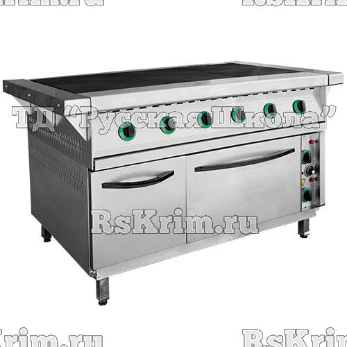 Плита электрическая 6-ти конф. с жар. шкафом ПЭП-0,72-ДШ-Н-01(корпус нерж.) (1265(1475)х850(895)х860(880)мм) Плита оснащена шестью чугунными конфорками общей площадью 0,72 м2. Размеры конфорки 417х295 мм. Жарочный шкаф имеет 4 уровня для противней/гастроёмкостей GN 1/1 (530х470 мм). Расстояние между уровнями 60мм. В комплекте идут 2 противня из черного метала 530х470х30 мм. Жарочный шкаф имеет раздельную регулировку мощности верхнего и нижнего тенов. Шкаф автоматически поддерживает заданную температуру от 50 до 300 С. Жарочный шкаф оснащен аварийным предохранителем от перегрева свыше 300 С. Обшивка корпуса плиты выполнена из нержавеющей стали. Плита оснащается регулируемыми по высоте ножками. Поставляется в собранном виде на поддоне. Упаковка гофрокартон и деревянная обрешетка.