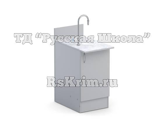 Тумба оборудована водоразборной колонкой и сливной раковиной.